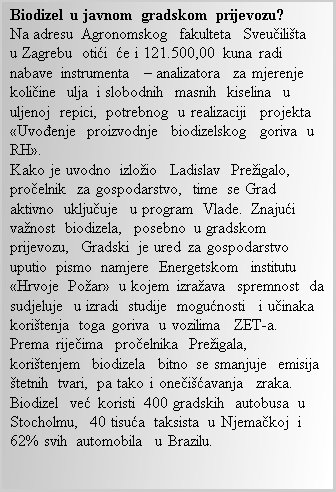 Iz sredstava tekuće pričuve izdvojit će se 250.000,00 kuna, za podmirivanje troškova znanstveno – istraživačkog projekta što ga, pod nazivom «Poljoprivredna proizvodnja na vodozaštitnim područjima», izrađuje Agronomski fakultet Sveučilišta u Zagrebu.